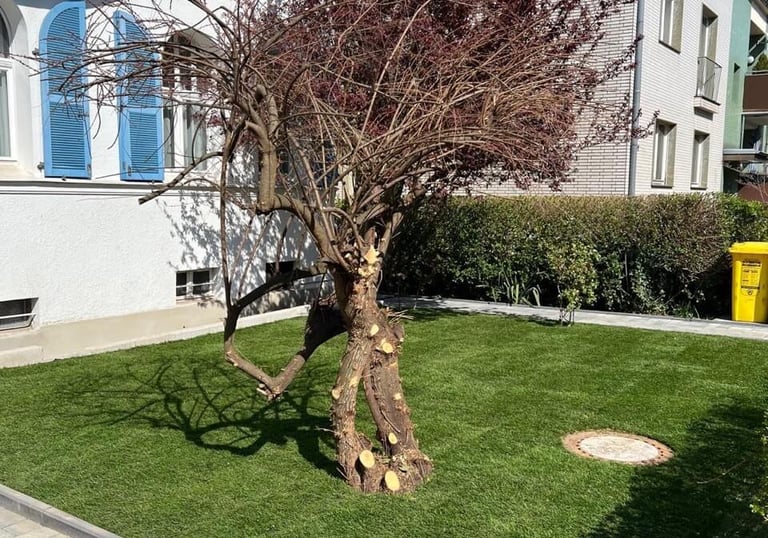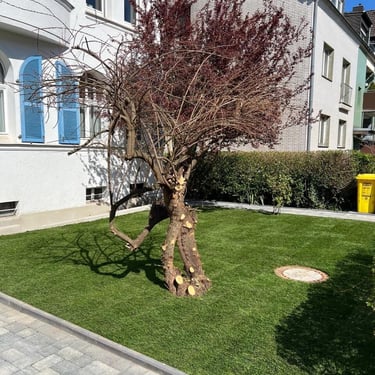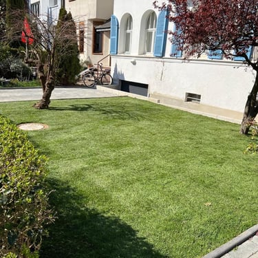Bei diesem Projekt wurde die bestehende Gartenfläche vollständig neu gestaltet. Nach einer gründlichen Bodenaufbereitung und Nivellierung wurde hochwertiger Rollrasen verlegt, der sofort für ein frisches, gepflegtes Erscheinungsbild sorgt. Zusätzlich erfolgte ein fachgerechter Rückschnitt der bestehenden Bäume, um die gesamte Fläche harmonisch in Szene zu setzen.
